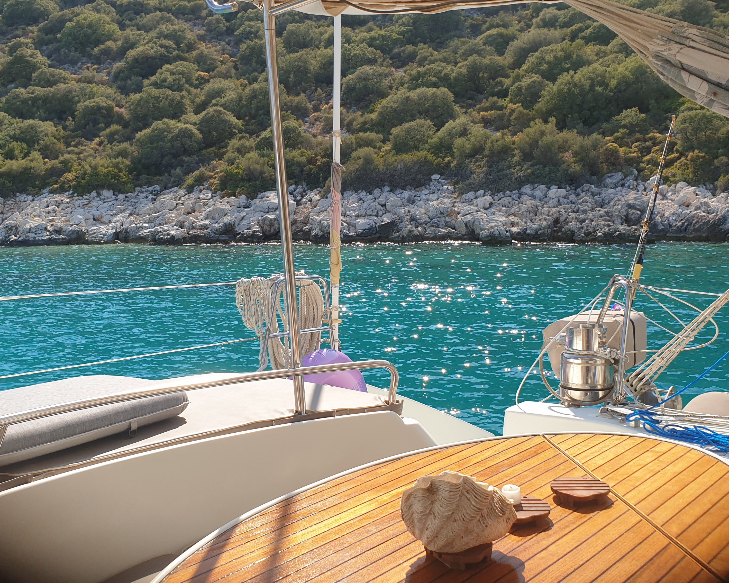 Als Lotta und ich am nächsten Morgen an Deck gingen, kam aber keine so gute Stimmung auf. Das war dann doch nicht so DAS was uns gefällt (viel zu viele Boote an einem kleinen Fleckchen Bucht mit einem Restaurant) und wir entscheiden uns, gleich wieder ankerauf zu gehen und Richtung Fethiye zu segeln