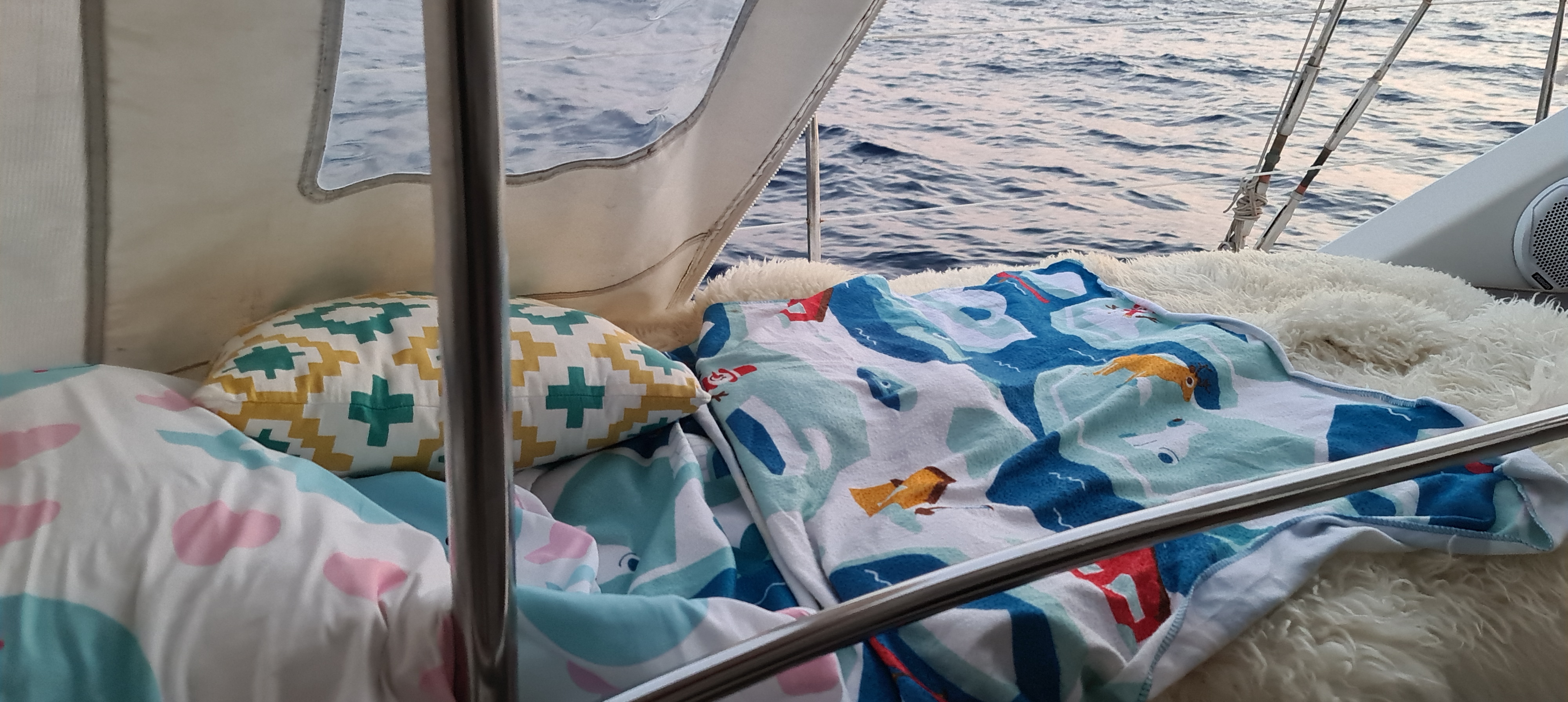 Lotta hatte uns noch einen schönen Schlafplatz an Deck vorbereitet, damit Gunnar nicht allein durch die Nacht segeln muss…( nagut , gegen Mitternacht sind wir dann doch in die bequeme Koje umgezogen und Gunnar musste dann die Nacht vor dem Steuer allein genießen?)